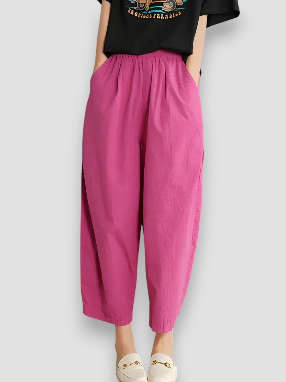 Il pantalone harem Celeste con vita alta è la scelta perfetta per un look comodo ed elegante nelle giornate calde. La vestibilità ampia crea un aspetto rilassato e leggero che ti mantiene fresca durante tutta l'estate.