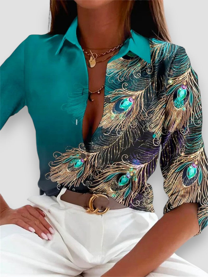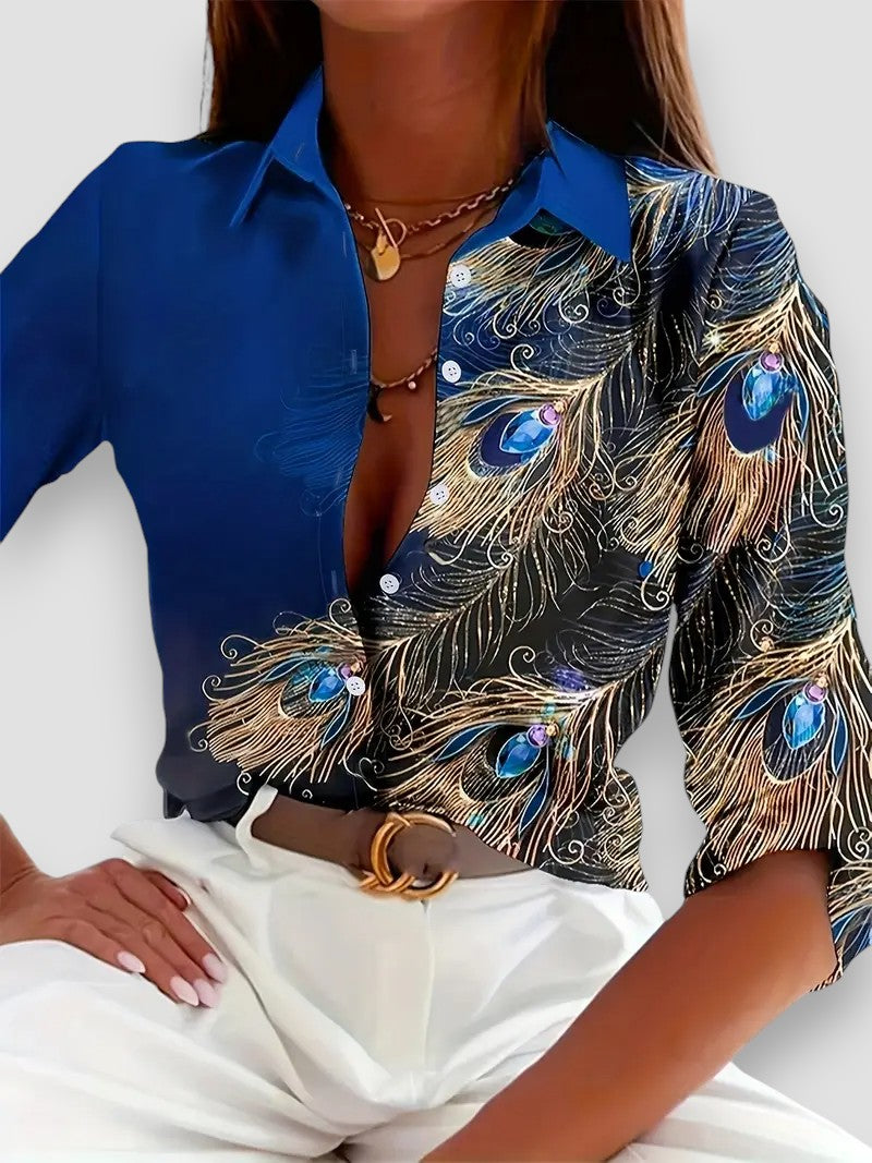 Elena | Elegante Camicia con Stampa di Pavone