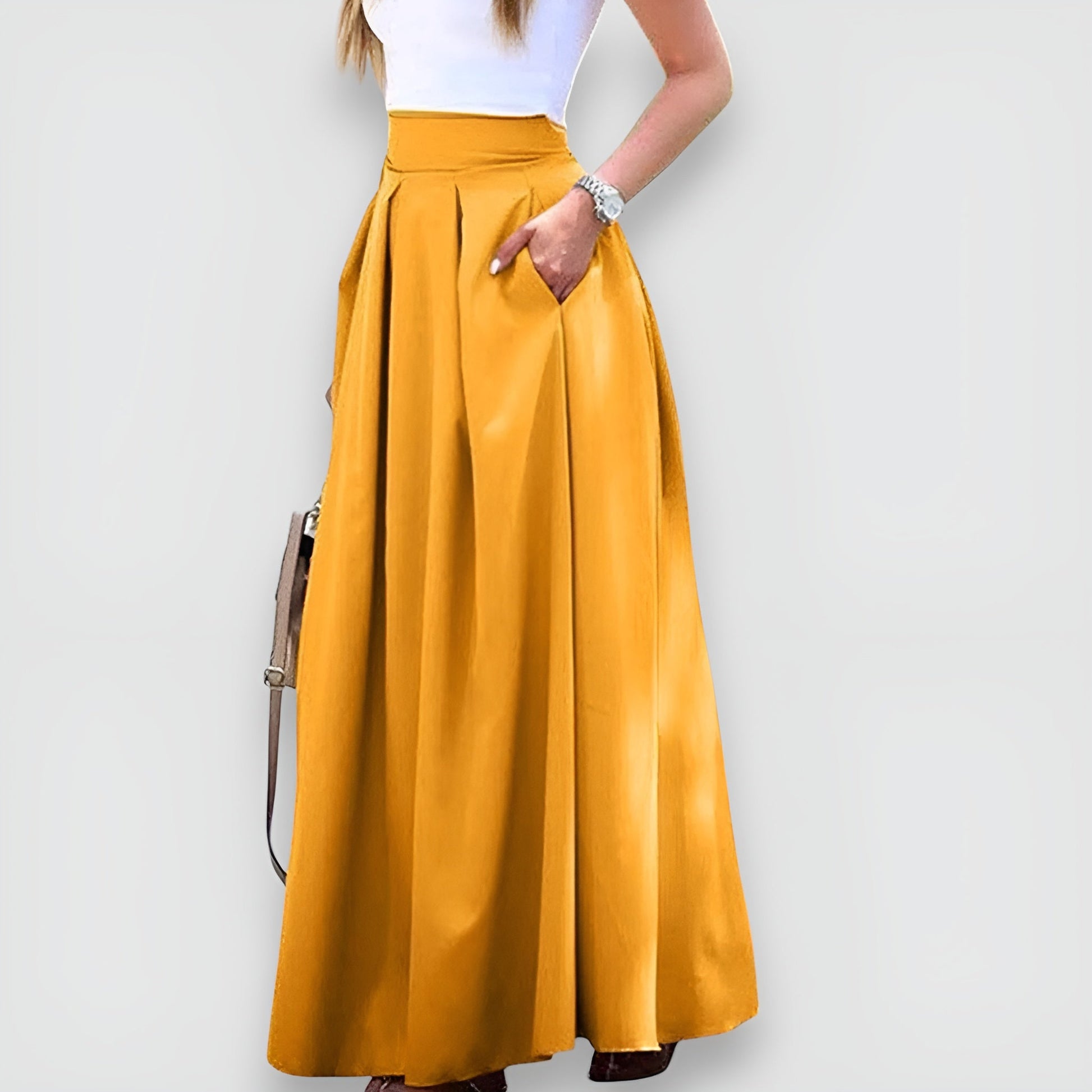 La Georgina Gonna Plissettata a Vita Alta è la combinazione perfetta di eleganza e comfort, un must-have per il tuo guardaroba! Il design a vita alta accentua la tua vita, mentre il tessuto fluido aggiunge volume e movimento. Che tu abbia un evento formale o voglia creare un look casual, questa gonna versatile si adatta a ogni occasione.