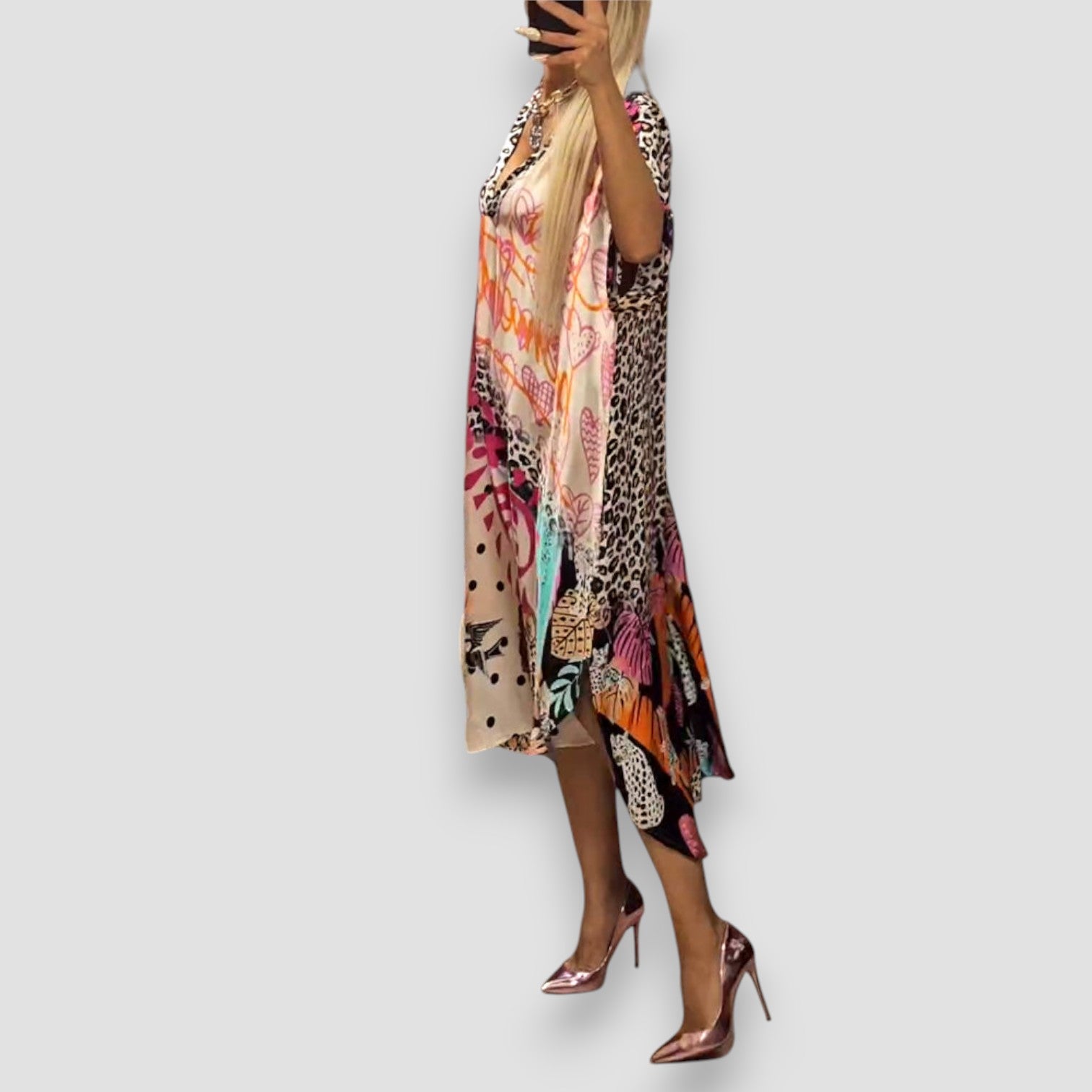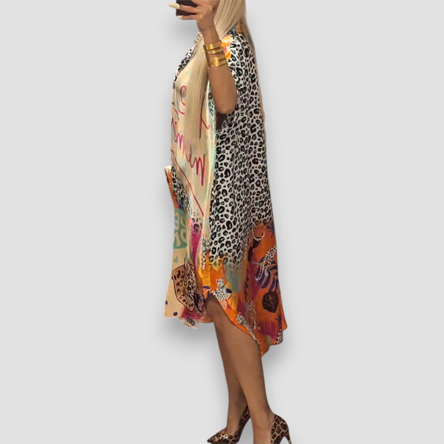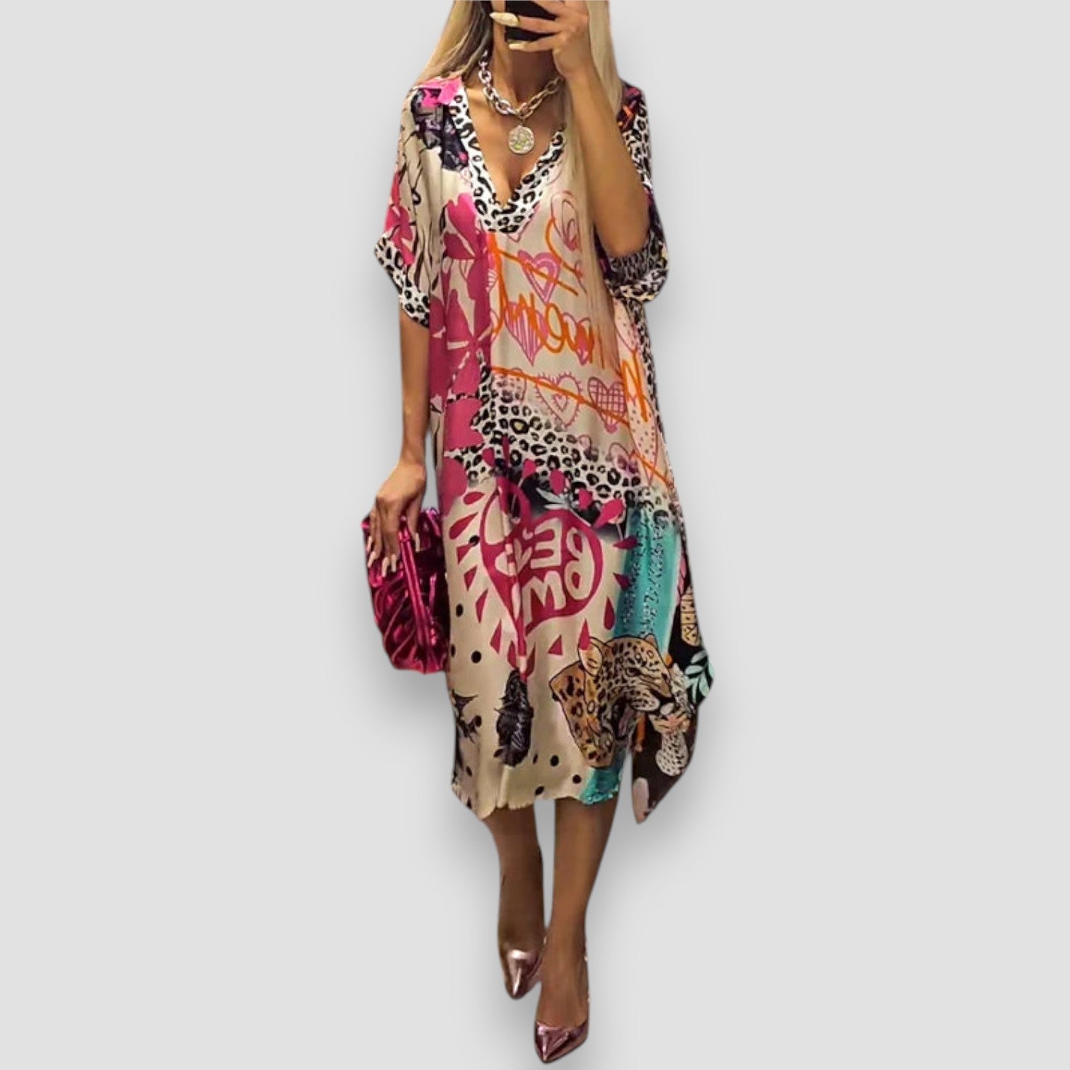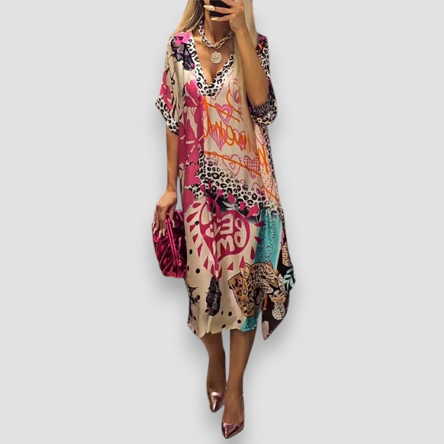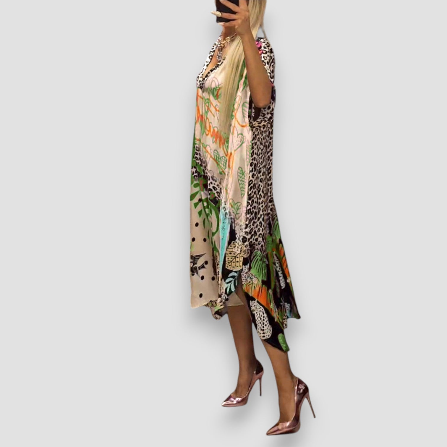 Leggero, elegante e perfetto per le giornate di sole – l'abito estivo Gianna è un must-have per un look fresco e senza sforzo. Con una scollatura a V e una vestibilità ampia, questo abito offre massimo comfort ed eleganza per ogni occasione.