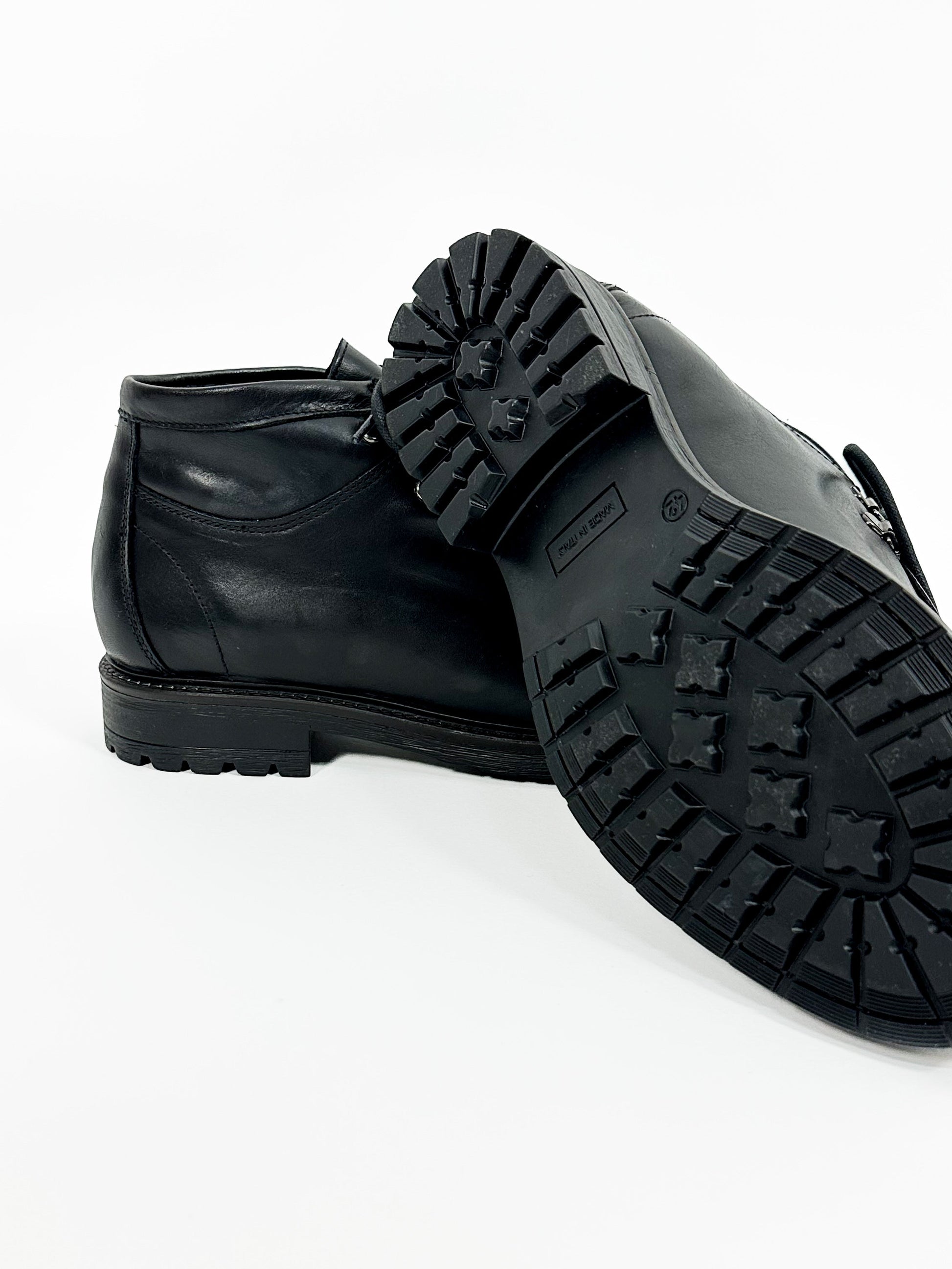 Stringata in pelle di vitello, suola carrarmato in gomma. Calzata regolare.