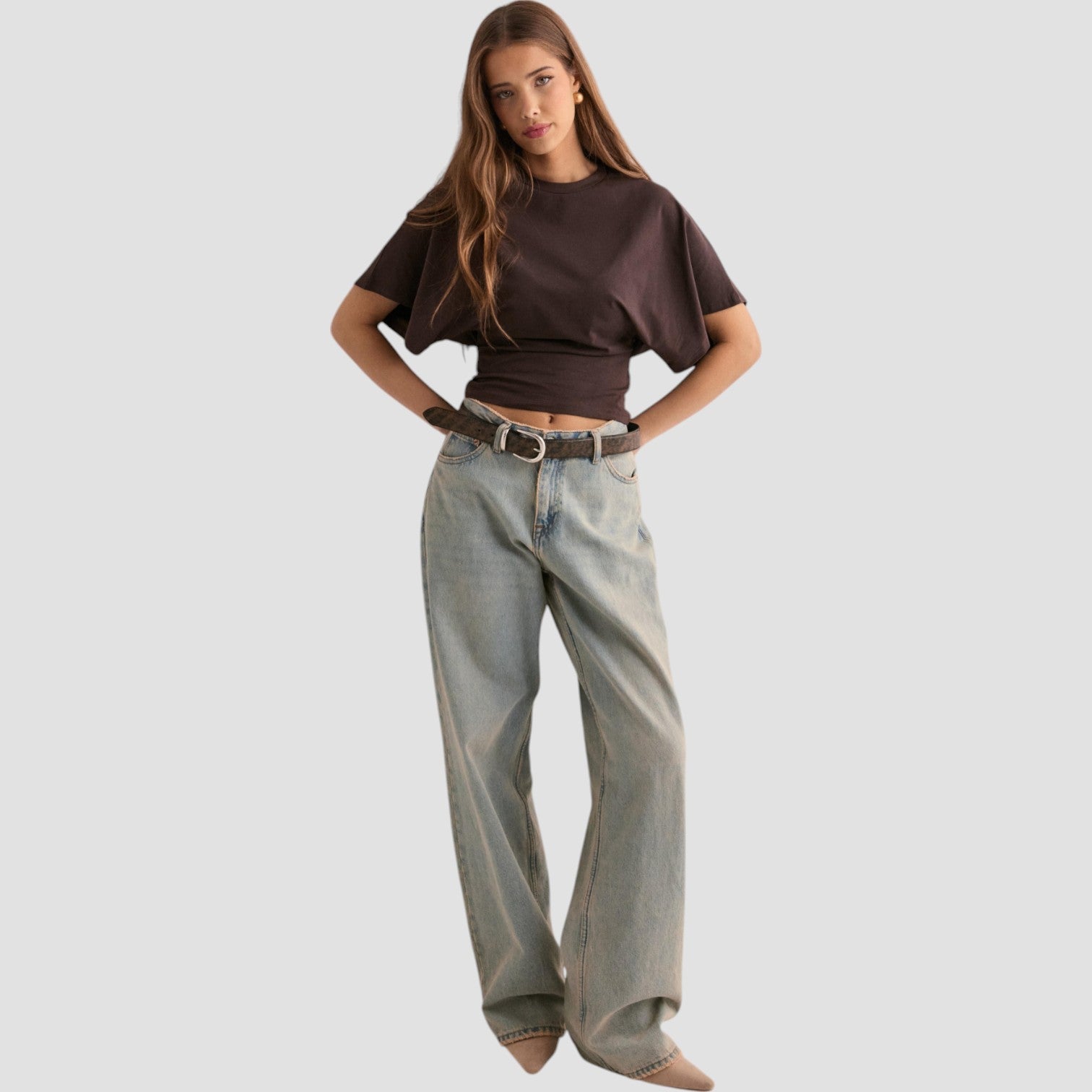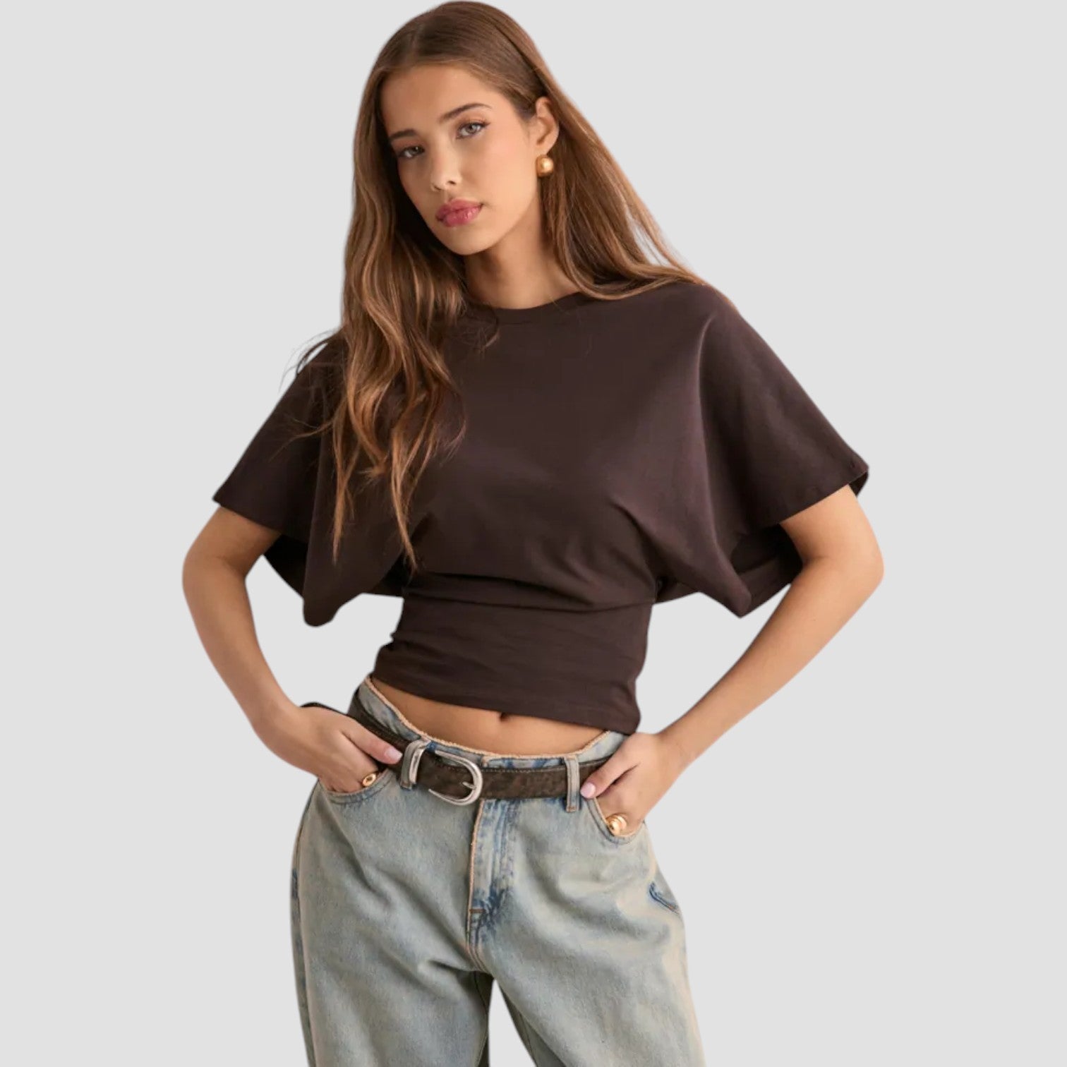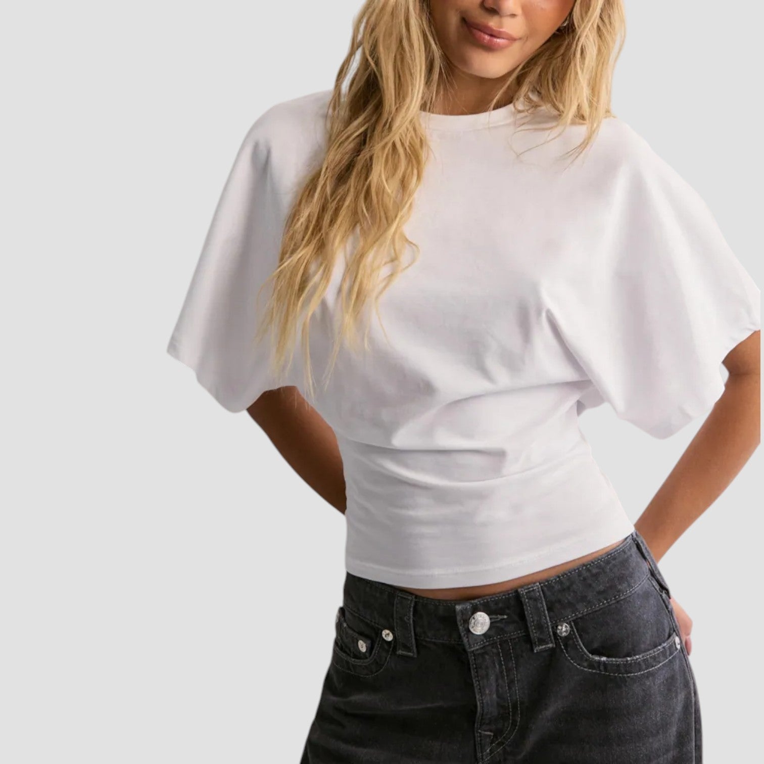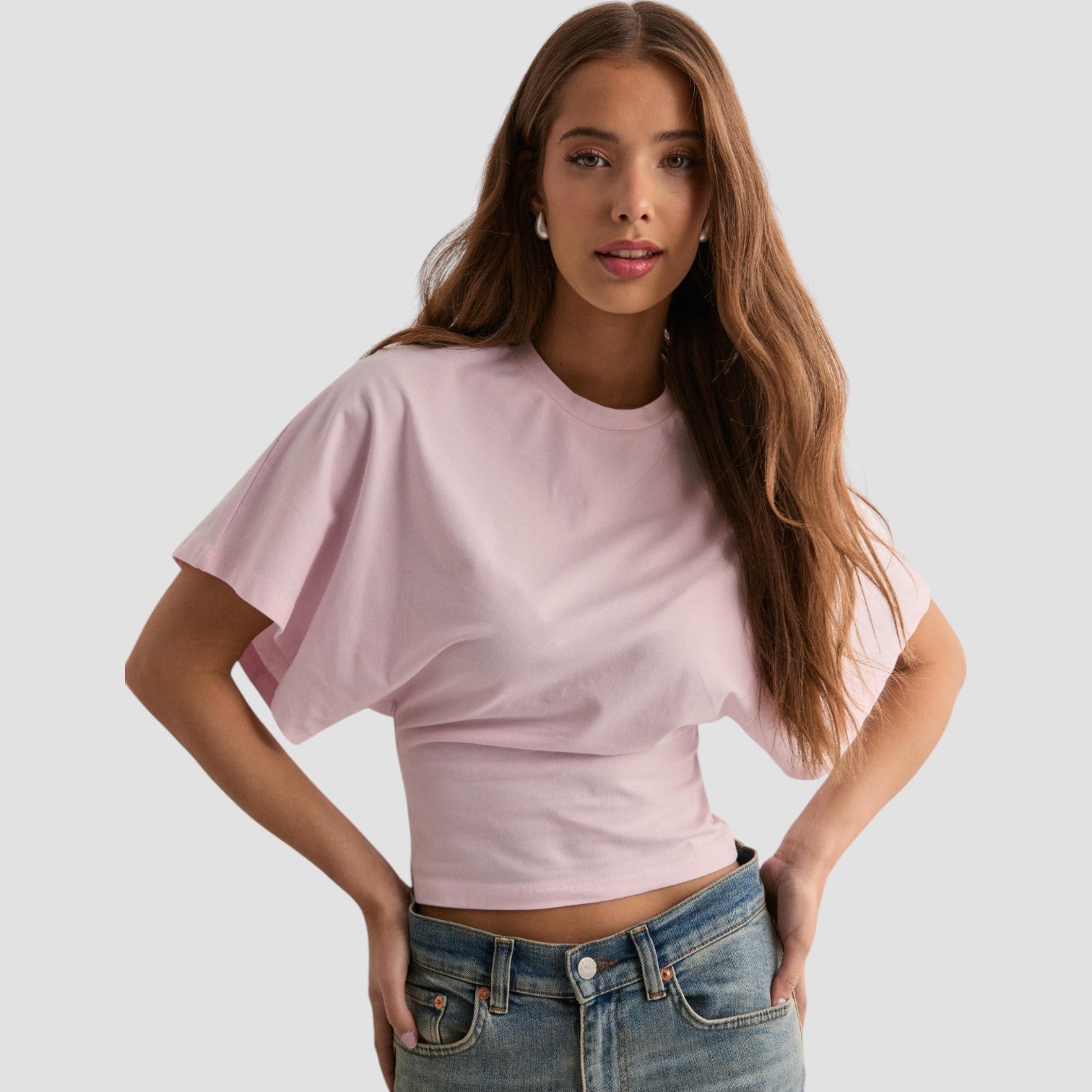 Aggiungi stile e comfort al tuo look quotidiano con la maglietta Luciana. Questa maglietta combina una vestibilità femminile con maniche ampie e alla moda, per un look moderno ed elegante. Perfetta sia per outfit casual che più eleganti.