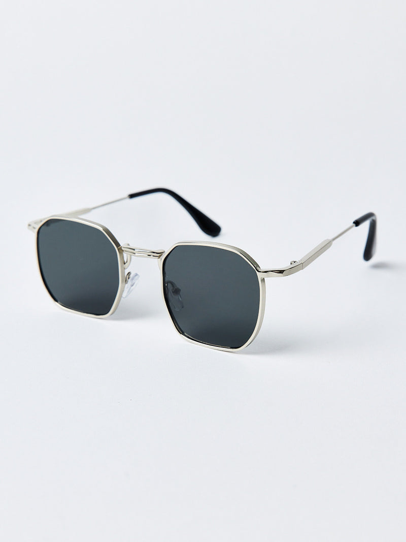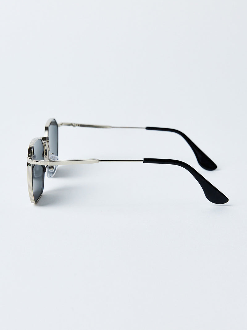 Montatura: geometria rettangolare rivisitata, metallo dorato