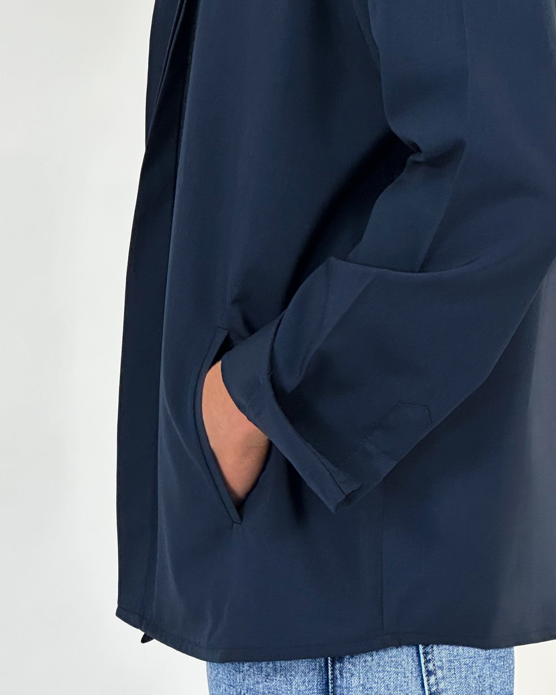 Perfetta da indossare aperta sopra una t-shirt o chiusa come camicia leggera, è un capo versatile che unisce eleganza minimale e comfort quotidiano.