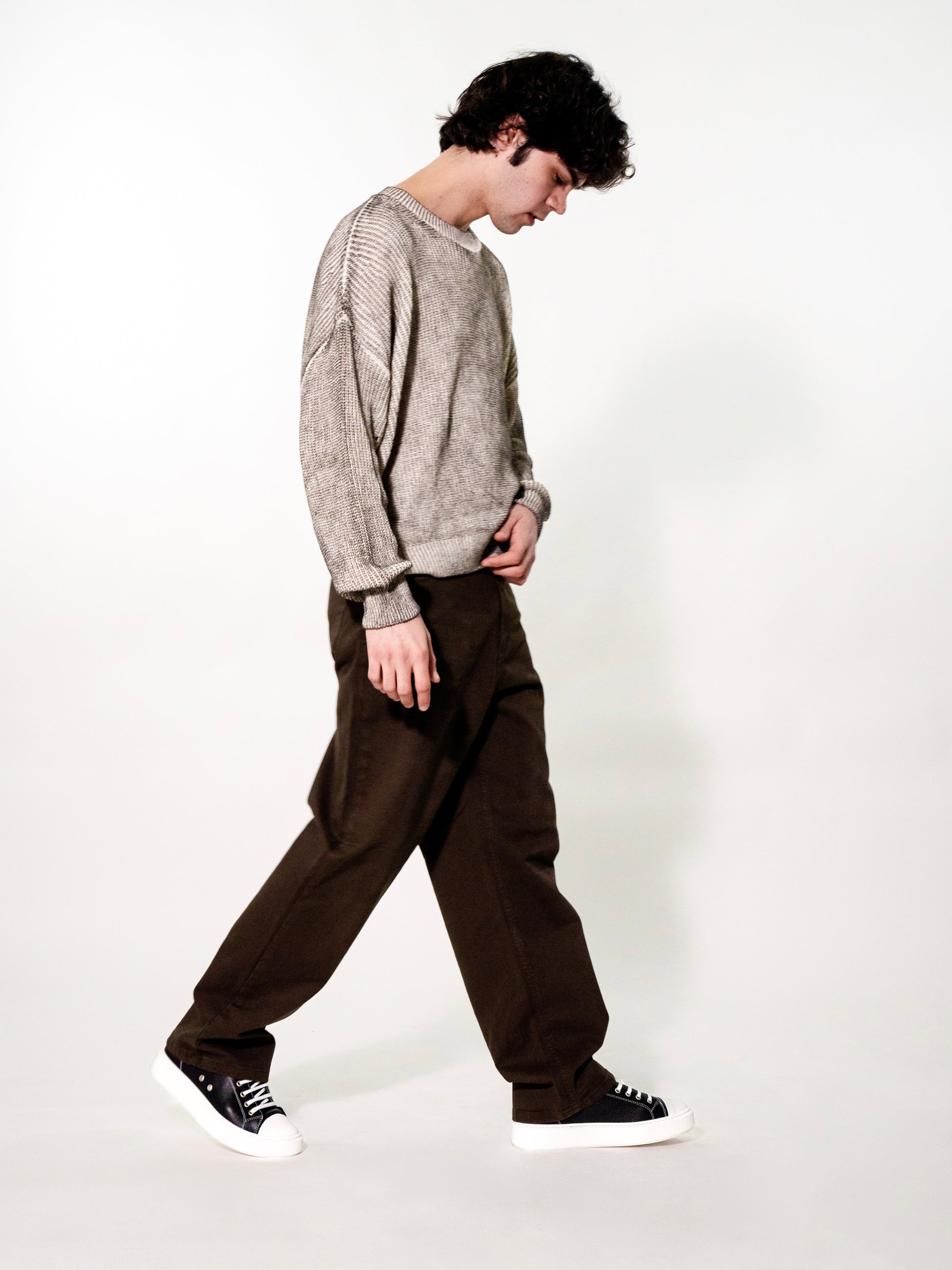 Pantalone dal taglio dritto, realizzato in morbido cotone per un comfort superiore. Il design minimal e la vestibilità rilassata lo rendono un capo essenziale per ogni guardaroba. Perfetto per look casual o più ricercati, si abbina facilmente a sneakers e maglioni over per un tocco contemporaneo.