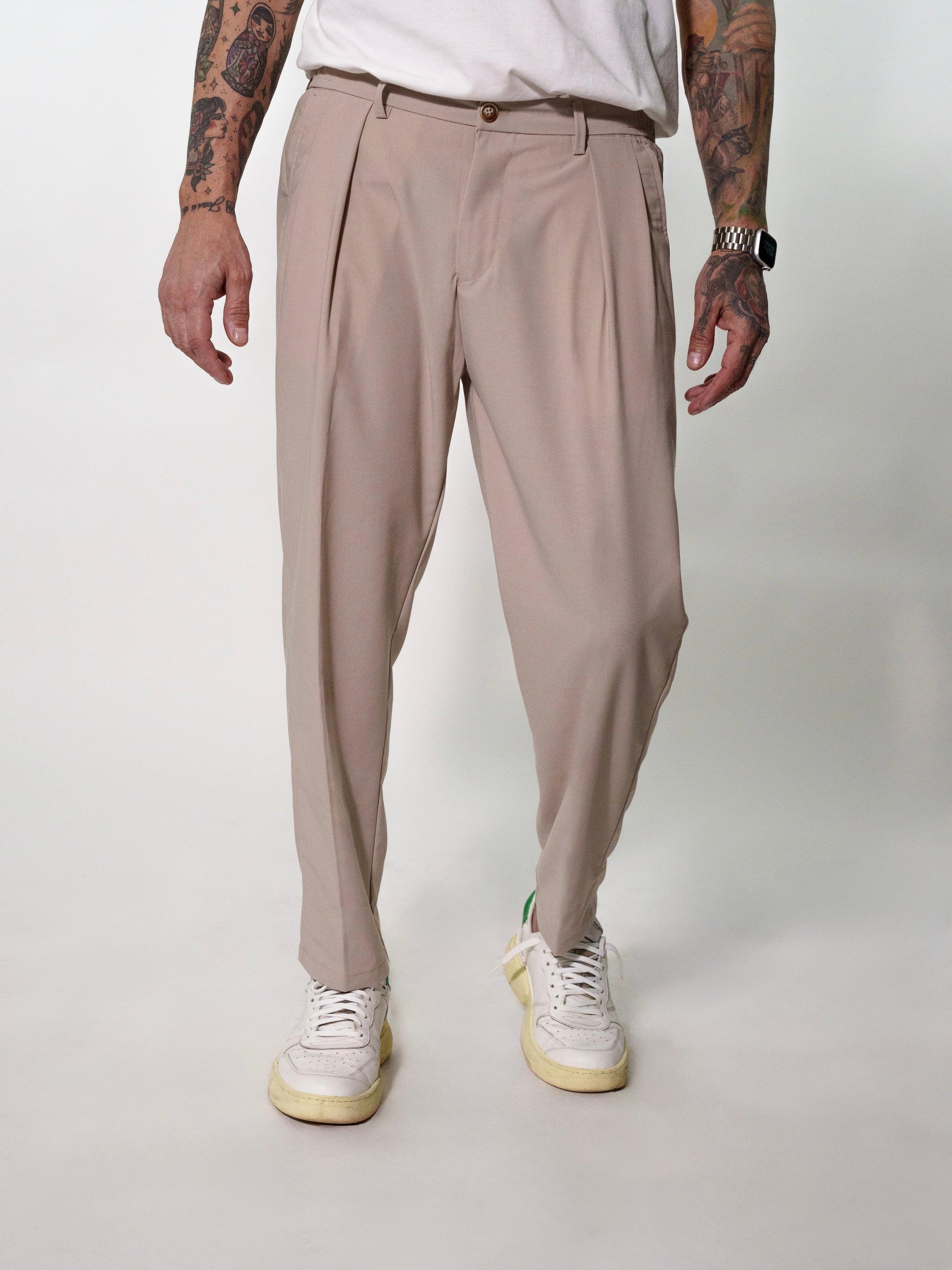 Pantalone elegante e versatile, realizzato in tessuto leggero e traspirante, perfetto per la stagione primaverile ed estiva. La vestibilità rilassata con pinces dona un tocco sofisticato senza rinunciare al comfort. Vita elasticizzata sul retro per una maggiore adattabilità. Tasche laterali e posteriori con bottone per un look curato nei dettagli. Un must-have per un outfit raffinato e contemporaneo.