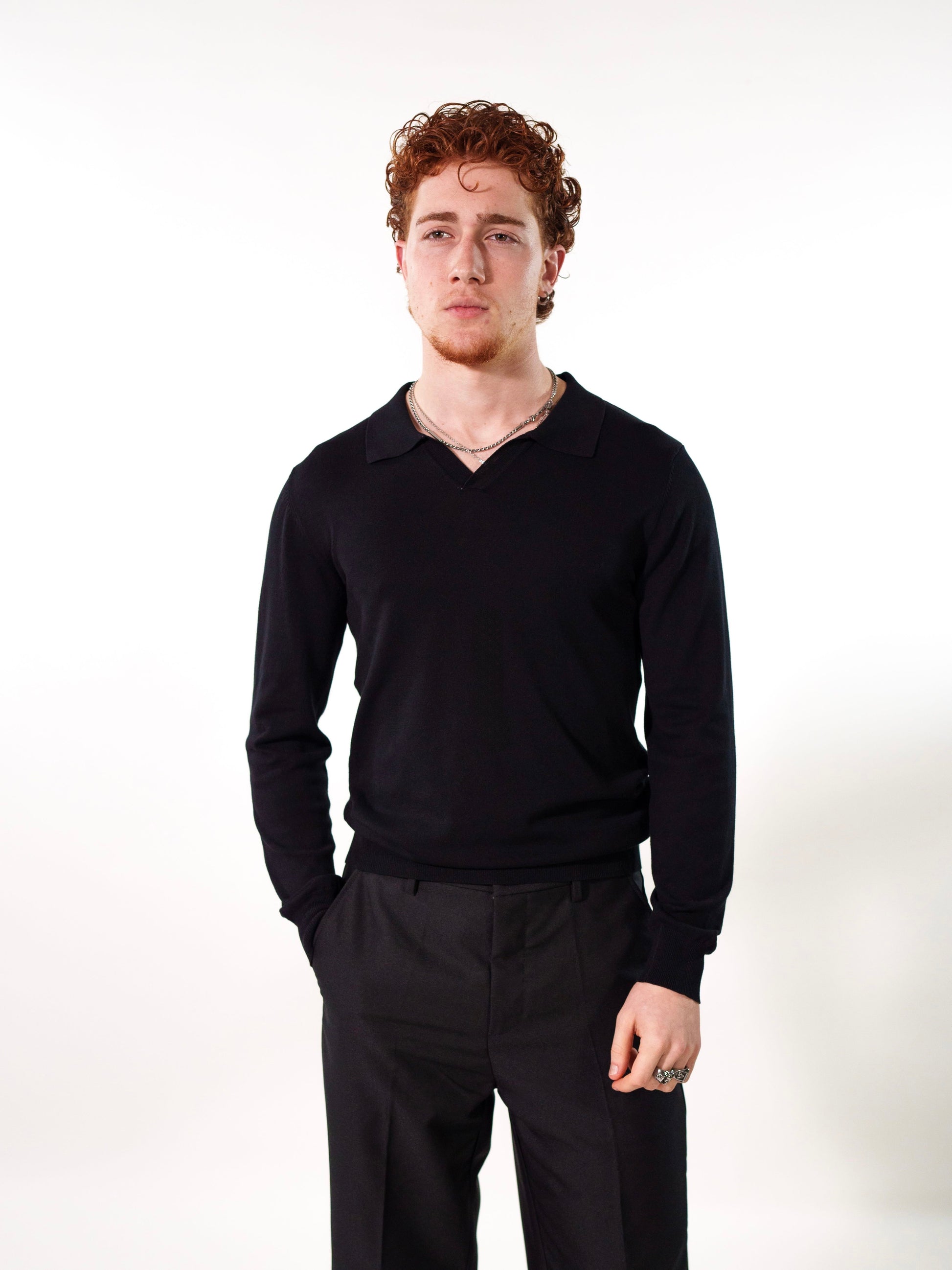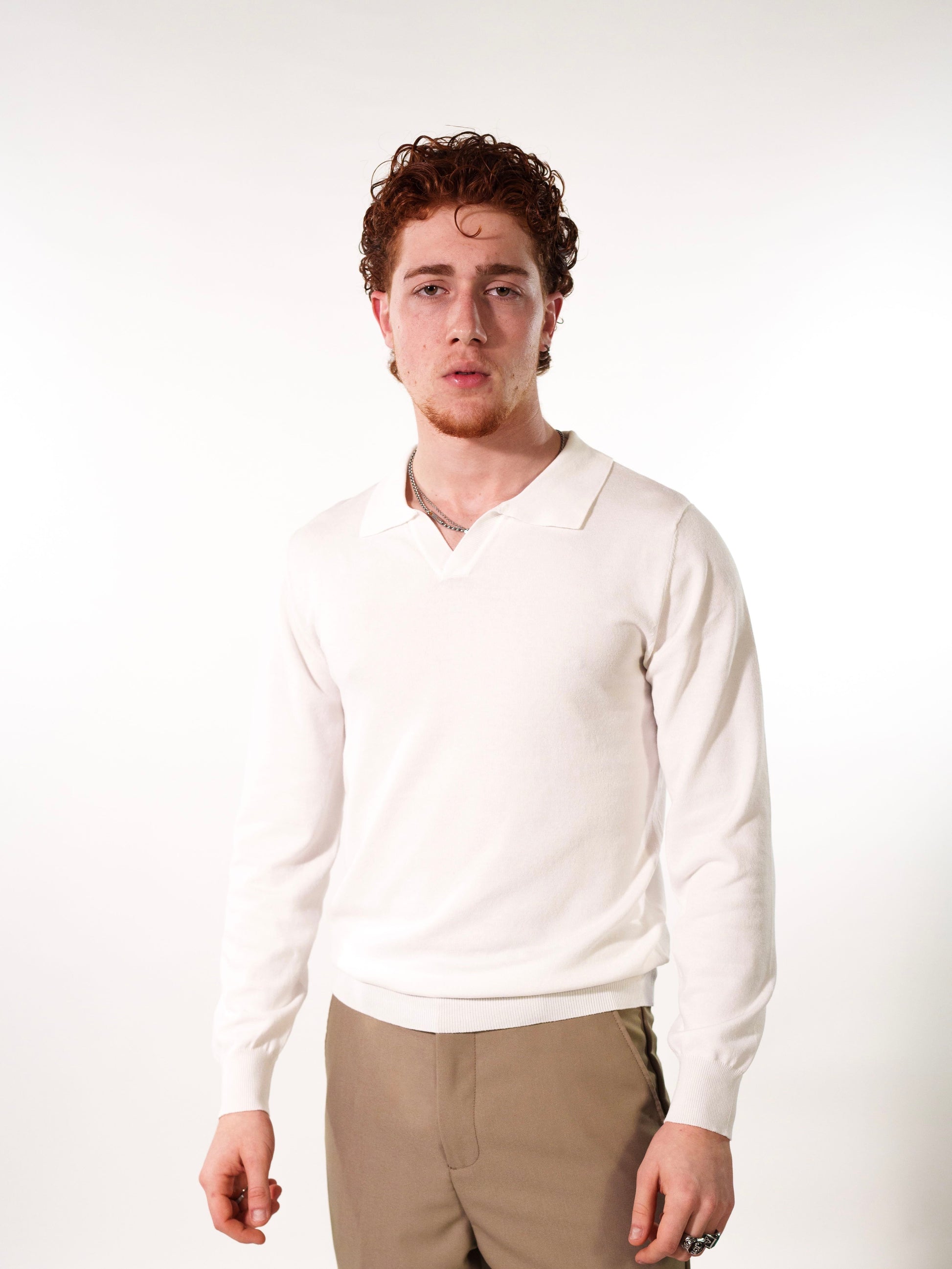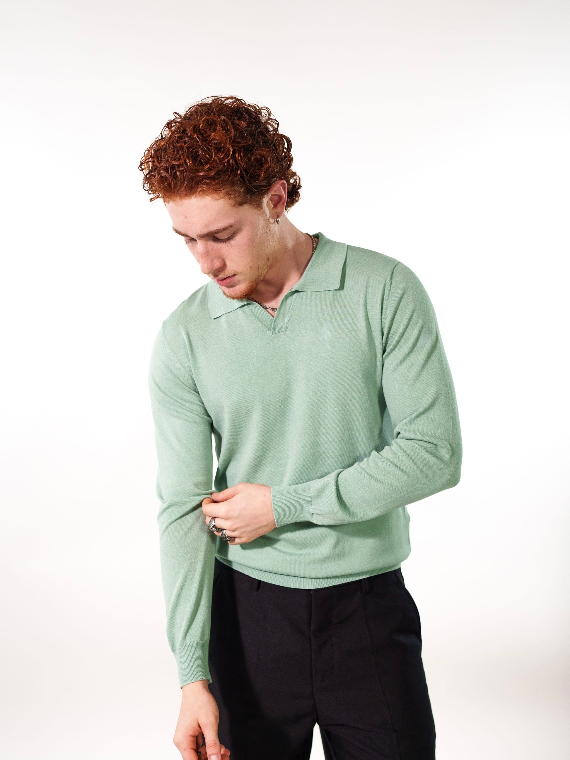 Polo a maniche lunghe in maglia leggera, perfetta per un look raffinato ma disinvolto. Il taglio regular assicura comfort e versatilità, mentre il colletto con scollo a V dona un tocco di eleganza essenziale. Realizzata in un filato morbido e traspirante, è ideale per la mezza stagione e le serate più fresche. Un capo dal fascino minimal, perfetto per essere abbinato sia a pantaloni sartoriali che a denim casual.