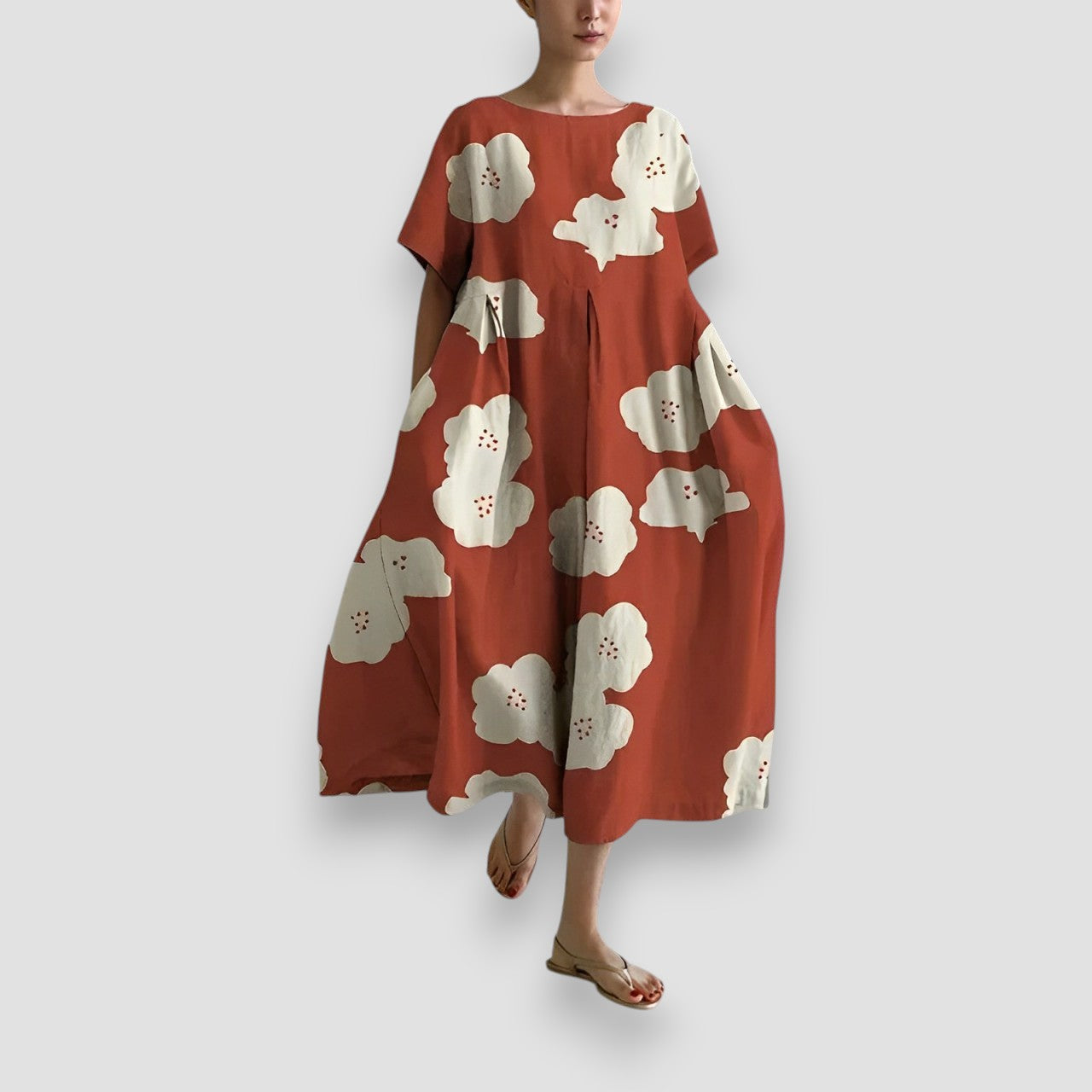 L'abito Romina offre comfort e stile con una vestibilità ampia e leggera. Il motivo giocoso e il materiale fluido rendono questo abito perfetto per un look fresco e moderno. Che tu stia trascorrendo una giornata casual o voglia aggiungere un tocco di eleganza, l'abito Romina è sempre una scelta vincente.