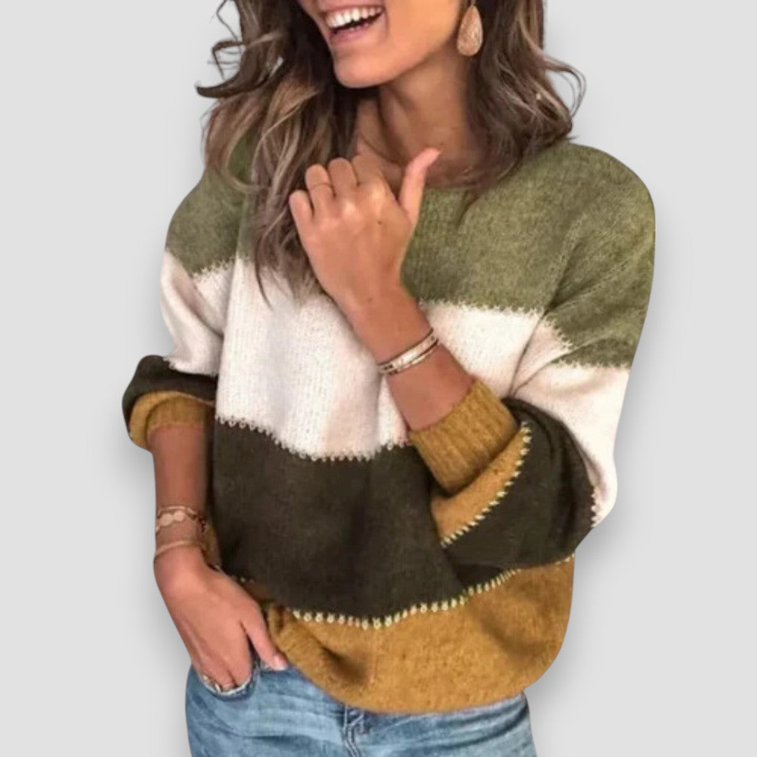 Il pullover Vera è la scelta ideale per le donne che desiderano combinare stile e comfort. Il suo elegante design a strisce aggiunge immediatamente un tocco di raffinatezza a ogni outfit. Realizzato con materiali di alta qualità e traspiranti, questo pullover versatile è il compagno perfetto per ogni occasione, mantenendoti caldo e comodo per tutto il giorno.