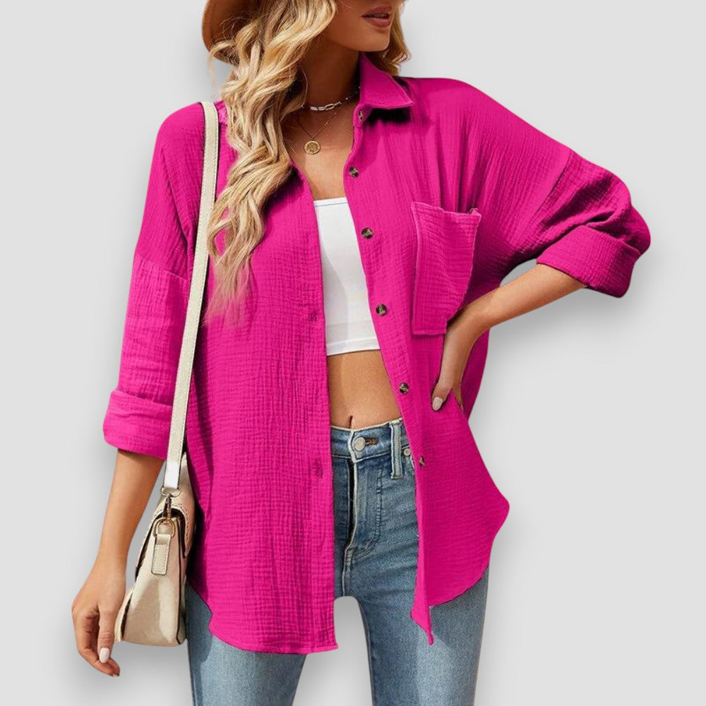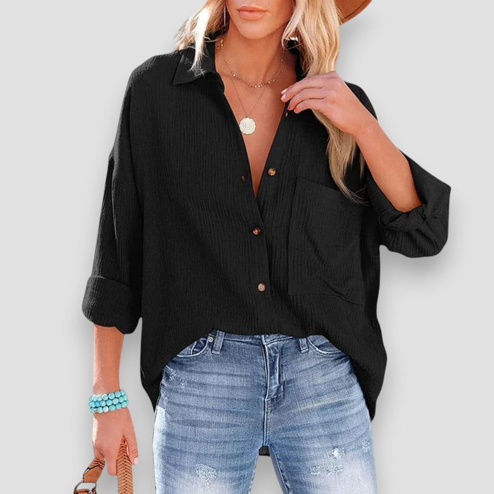 La blusa Viviana unisce leggerezza e comfort in un design raffinato, perfetto per le giornate estive. Realizzata in un tessuto traspirante, offre praticità senza rinunciare allo stile.